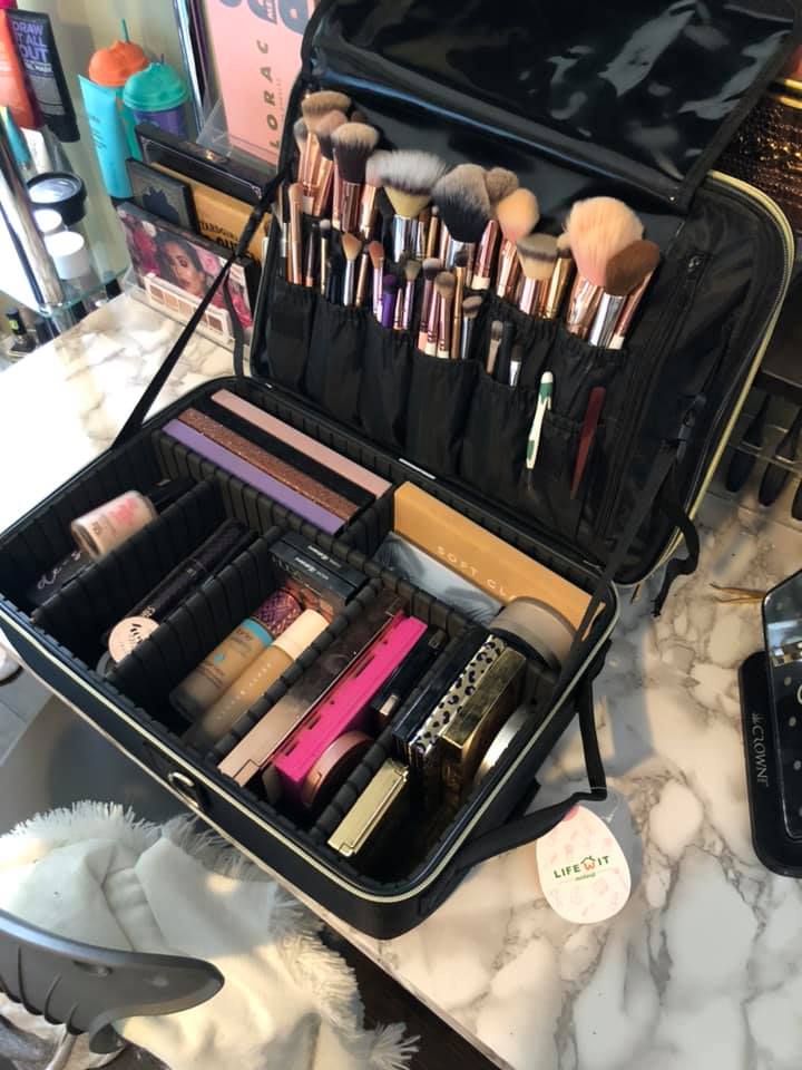 I got this bad boy for travelling this summer and it's soooo much more heavy duty than I expected. I fit ALL of that in it, and there was several pockets still unused 😂 it was more than I'd ever take on vacation but I wanted to see what it could do. The brush pockets are like a silky fabric to keep them from getting misshapen and another large piece of silky fabric Velcro's over them for protection. The dividers are all removable so you can customize the room you need for awkward shaped palettes. It's super high quality all over and the straps you can wear like 10 ways including back pack 😍 I'm so obsessed with it. And it's surprisingly really compact like a large purse. I got it just as a regular makeup user but after seeing how much it can fit, I definitely recommend it for makeup artists.