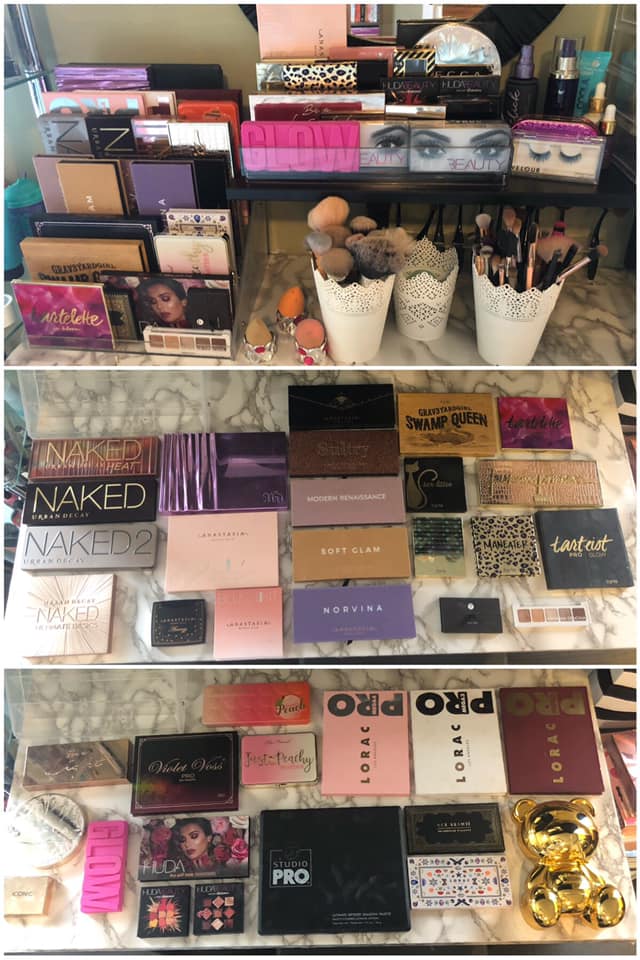 I'm so proud of this hack, but these acrylic nail polish holders are marketed to salons and super cheap on amazon, but they hold a ton. I've got like 37 palettes and some compacts and extras fit inside one large and small organizer. Plus they're all in view which warms my soul. 😂 check your amazon if you're looking for something easy and inexpensive